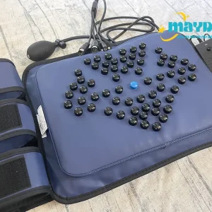 - Đai có bóng bóp nén khí (giống bóng của máy đo huyết áp); chỉ cần quấn đai quanh bụng, sau đó bóp bóng để tạo áp lực ôm sát vòng eo, giúp đai cố định, không xô lệch trong suốt quá trình trị liệu.